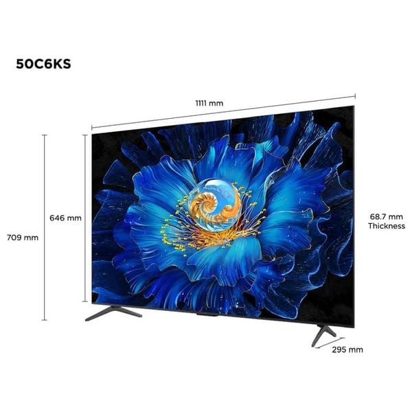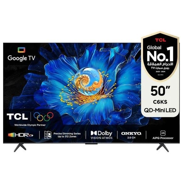 • استمتع بمشاهد بدقة 4K على تلفزيون TCL C6KS مقاس 50 بوصة بتقنية QD‑Mini LED. يوفر تعتيماً دقيقاً يصل إلى 312 منطقة مع HDR10+ ودولبي فيجن لتعزيز التباين والألوان، ومعالجة AiPQ لتحسين جودة الصورة. تعزز خوارزمية الإضاءة الديناميكية الحيوية السطوع والعمق، بينما يوفر مكبرات الصوت ONKYO 2.0 قناة صوتاً غنياً مع Dolby Atmos وDTS:X. ومع جوجل TV يمكنك الوصول بسهولة إلى التطبيقات والبث، مع دعم إير بلاي 2 وميراكاست للعرض اللاسلكي.