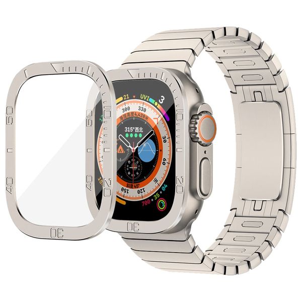 • واقي شاشة من الزجاج المقوى مع إطار باللون التيتانيوم لساعات آبل ألترا قياس 49 ملم, تم تصميم هذا الإكسسوار خصيصًا لتوفير حماية فائقة وجمالية رائعة وليتناغم مع التصميم الأنيق لساعة آبل.