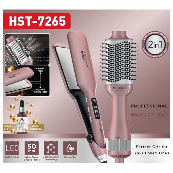 • مصفف شعر نيوال HST-7265 عالي الأداء؛ بمحرك DC بقوة 1200 واط، وسريعتين، وست إعدادات حرارة مرنة لتصفيف متعدد الاستخدام. يأتي مع فرشاة سيراميكية بيضاوية وصفائح سيراميكية مملوءة بزيت الأركان للحصول على نتائج ناعمة ومحفوظة للشعر. شاشة LED واسعة وإيقاف تلقائي عند 60 دقيقة لتسهيل الاستخدام. مجموعة 2 في 1 تتيح تجفيف الشعر وتشكيله بسهولة في المنزل.